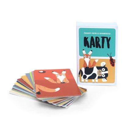 Originálně ilustrované hracie karty v sadě Černého Petra a kvarteta pro rodinu.