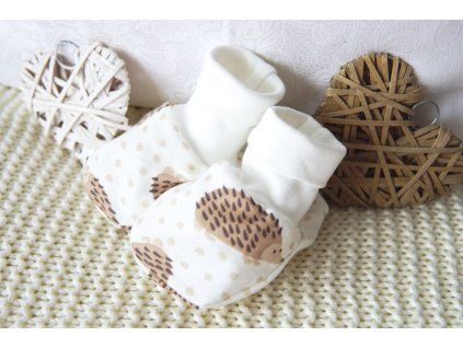 Měkké bavlněné capáčky v smetanové barvě s roztomilým motivem ježka.