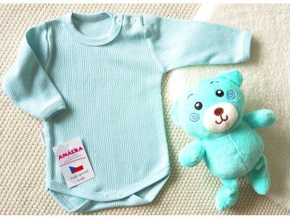 Elegantní bavlněné body s dlouhým rukávem a jemným ažurovým vzorem v barvě zelené mojito.